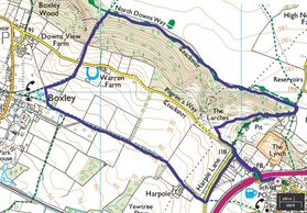 Ann's 2.4 mile ramble from Charing up to The Pilgrims Way and back through the racecourse.