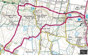 Pat's fine 4.5 mile walk down dale and up hill from the Ringlestone Inn above Harrietsham