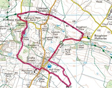 Jean and Monica's 4 mile walk from Grafty Green past Boughton Malherbe church with a few stiles and an interesting small diversion in Lower Willows!!