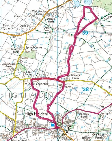 Julia's very pleasant walk from the Chequers on the Green High Halden.